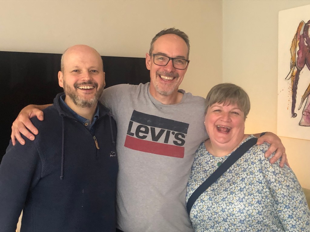 Lovely to have a quick catch up with Claire and Mike before the United game – highlight of the day! Looking forward to the lemon cake later – think there is a cake theme going now! 🧁 🎂 🍰