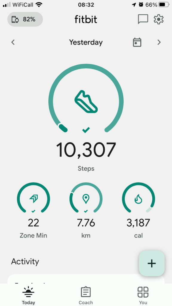 Now that feels like progress. Compared to the 91 steps I registered on the day after my operation.