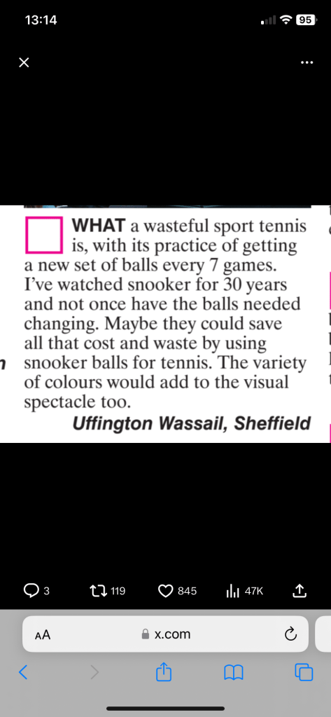 And finally the letter to the editor. A step up from The Times Most entirely pointless. Always raise a smile. Todays from Twitter a prime example. 🤩🤣🤣🤣🤣.